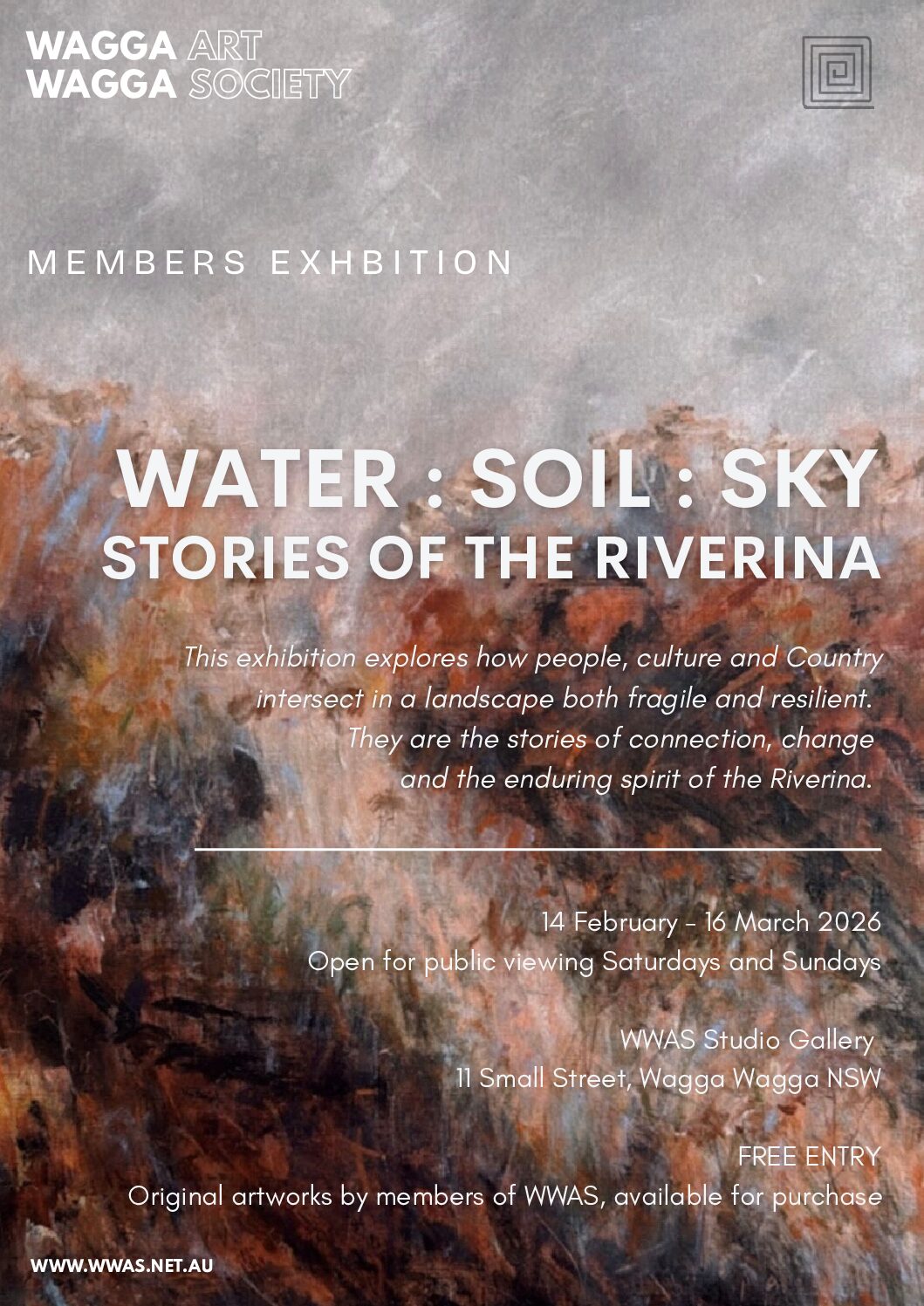 This original artwork members exhibition explores how people, culture and Country intersect in a landscape both fragile and resilient. They are the stories of connection, change and the enduring spirit of the Riverina.